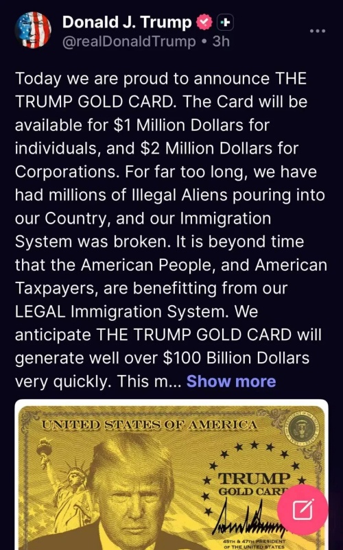 一边宣布对H-1B实施严格入境政策的,另一边川普的另一个全新计划——“特朗普金卡”(THE TRUMP GOLD CARD)也宣布启动。