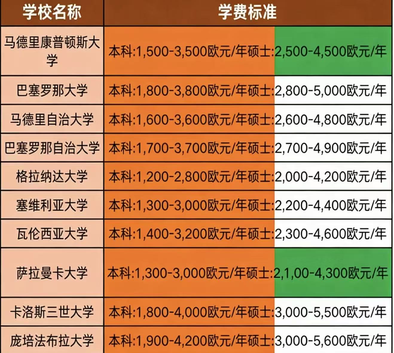 友好的物价水平和打工政策让西班牙常年位居“留学费用最低国家”前五。对于追求高性价比的留学生来说,西班牙无疑是一个“花得少、学得好”的理想选择。